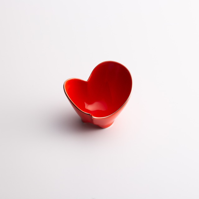 【有田焼】紅赤釉渕プラチナハート型仲付