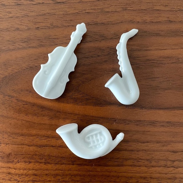 ※価格は税込表示です △▼△▼△▼△▼△▼△▼ 以下の点を予めご了承ください。 ・ピンホール(針先ほどの小さな穴) ・絵の具とび ・黒点 ・釉薬のムラがある場合がございます。 ・記載しているサイズと実際のサイズは多少の誤差がある場合がございます。 ・スクリーンによって色みが異なることがございます。 同一商品を複数ご注文いただいた際は出来るだけ近いものをお選びしますが、 それぞれのうつわの個性としてお楽しみください。 △▼△▼△▼△▼△▼△▼ 商品サイズ:バイオリン:6.0*2.5㎝ ホルン:5.0*3.3㎝ サクソフォン:5.5*2.5㎝ 生産:有田/伯父山窯 素材:磁器