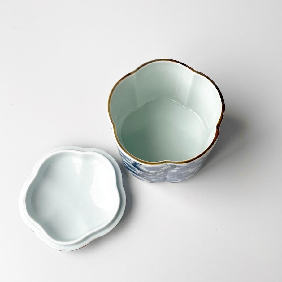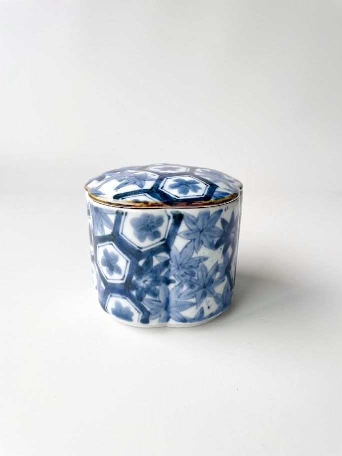 《1点限り/SALE》染付亀甲雲錦 梅型蓋物