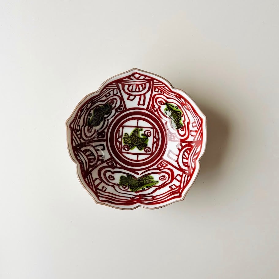 【伊万里焼】錦魚紋桔梗渕小鉢