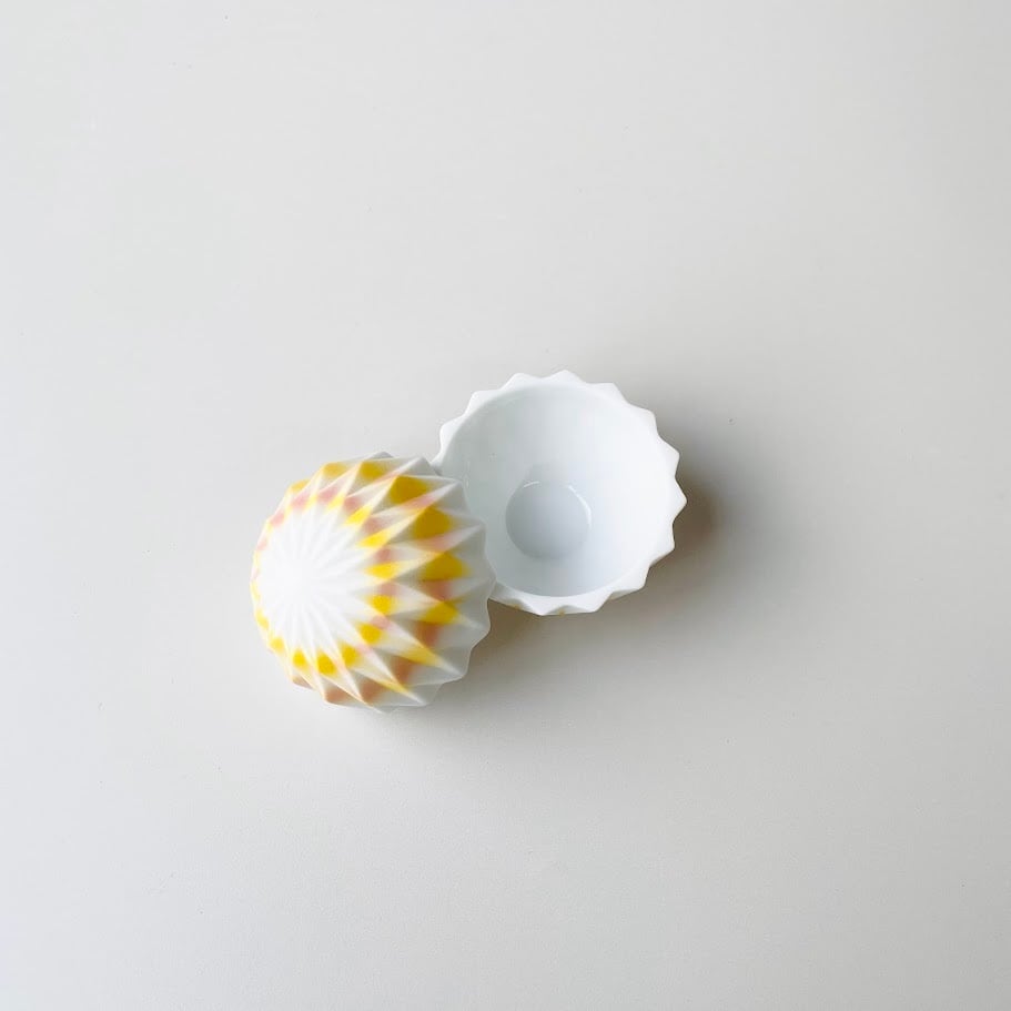 《1点限り/SALE》ダイヤ彫カバードボウル イエロー・ピンク