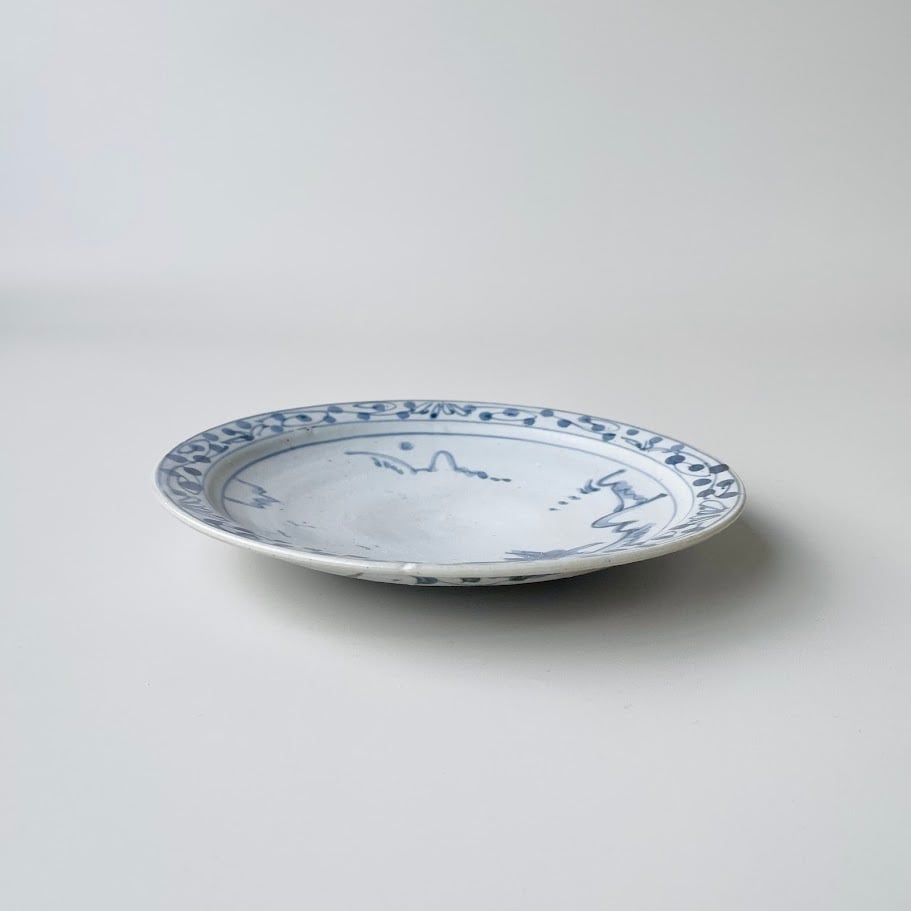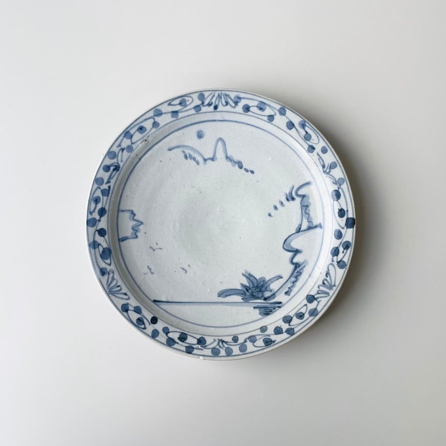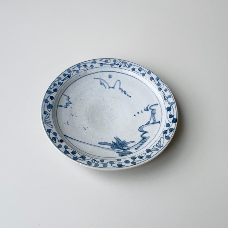 【唐津焼】唐草山水 六寸皿【在庫限り】