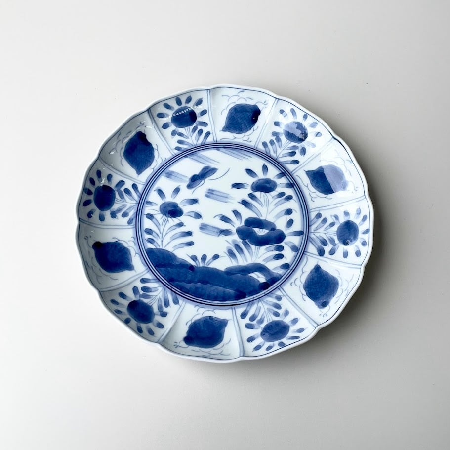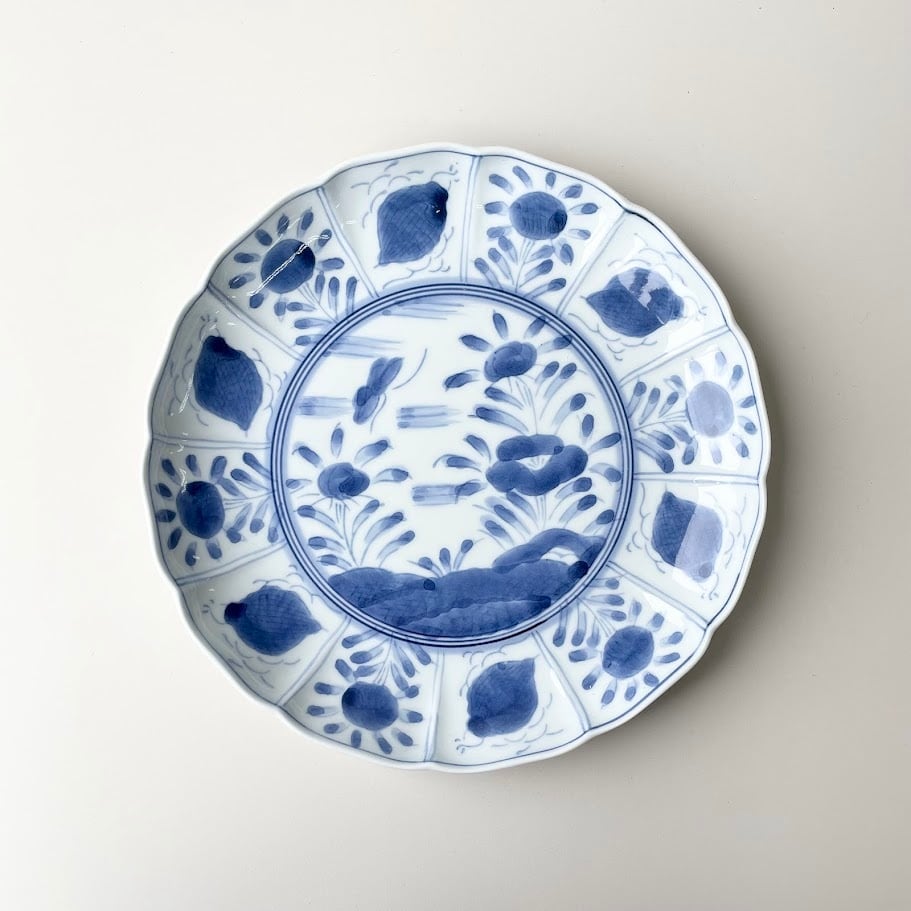 【肥前吉田焼】染付花蝶芙蓉手 輪花七寸皿【在庫限り】