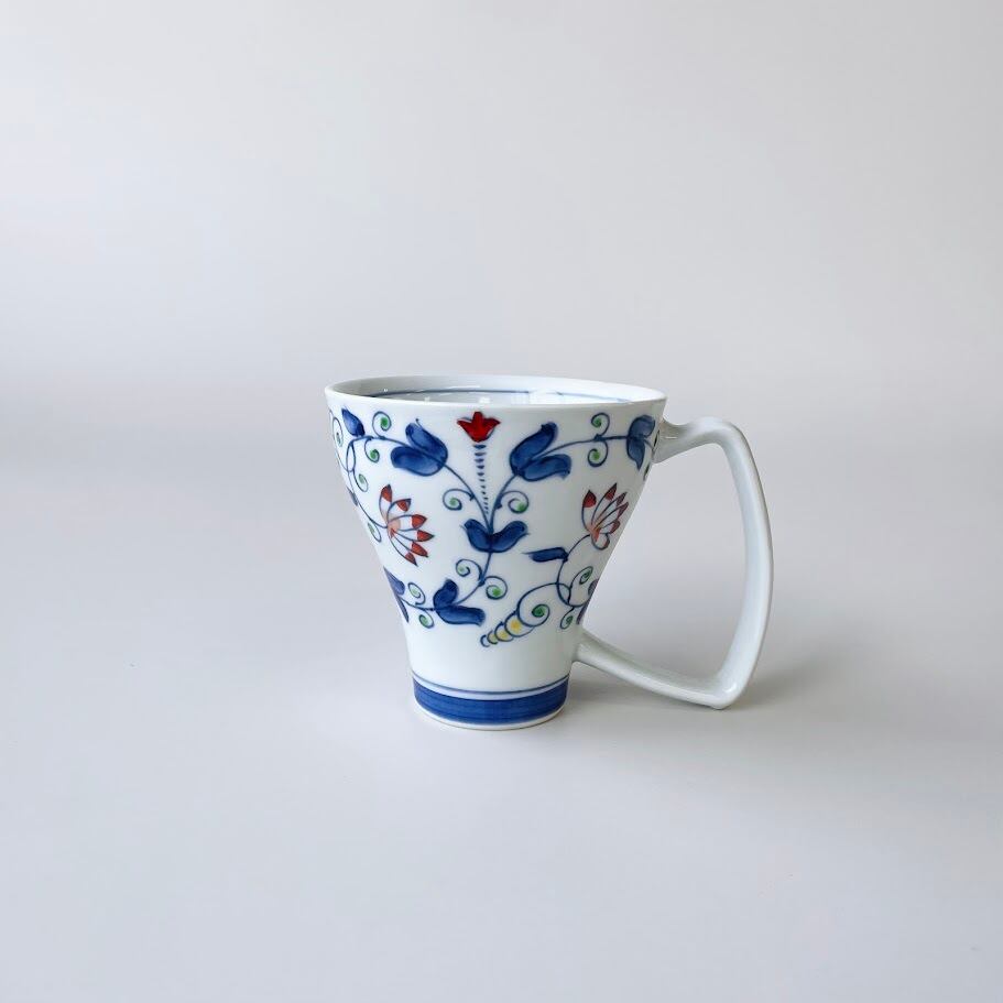 【吉田焼】つる草紋 マグカップ(青)【在庫限り】