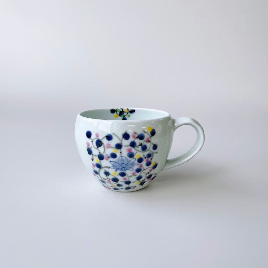 【有田焼】染錦色絵短冊唐花 スープマグ(桃)【在庫限り】