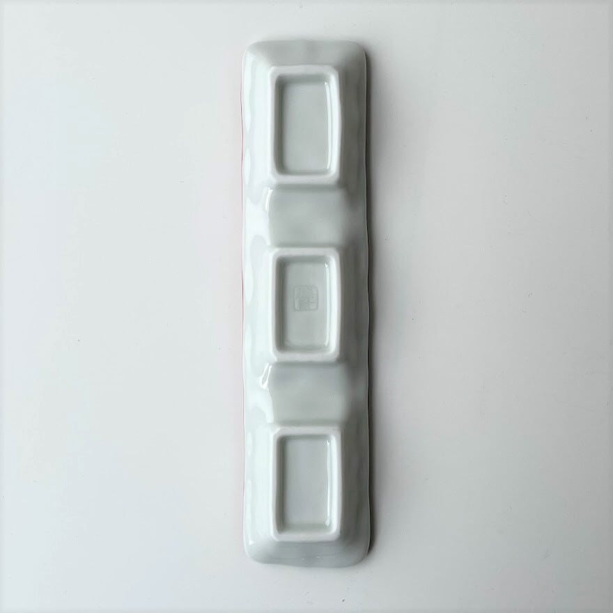 【有田焼】なぶり四方三種皿【染付市松/三色線】