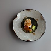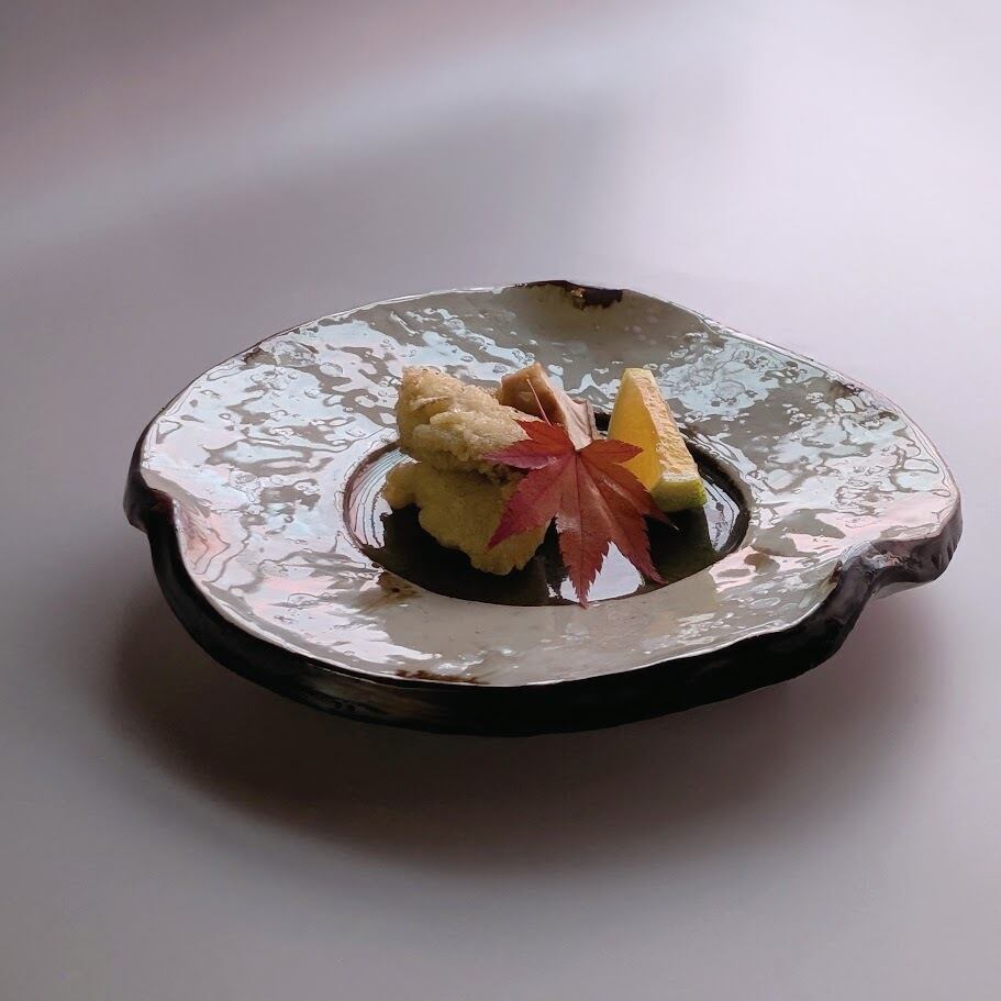 縁錆と厚みを持たせたフォルムは重厚感があり三つ足でさらに料理を引き立てます。