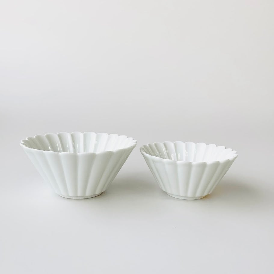 【波佐見焼】白高麗菊彫反鉢(M)