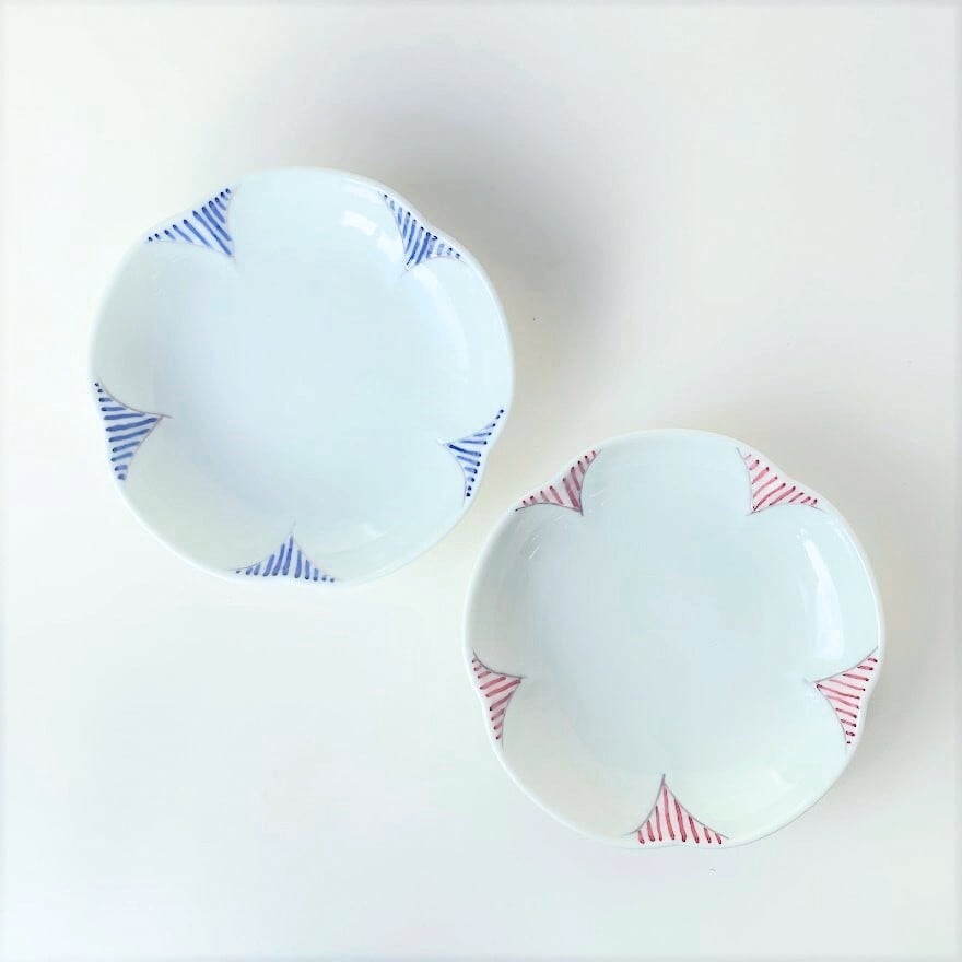 【波佐見焼】輪花十草 花型三寸皿(青)(赤)