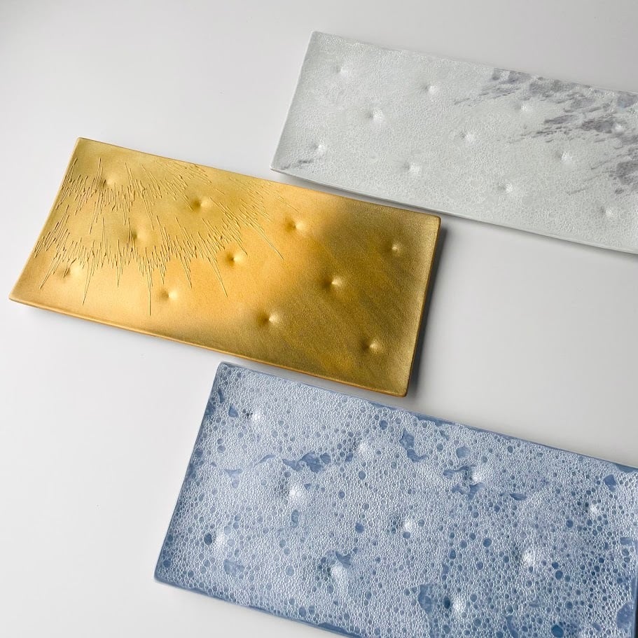 【有田焼】ルリ吹白泡雲銀 ロングプレート
