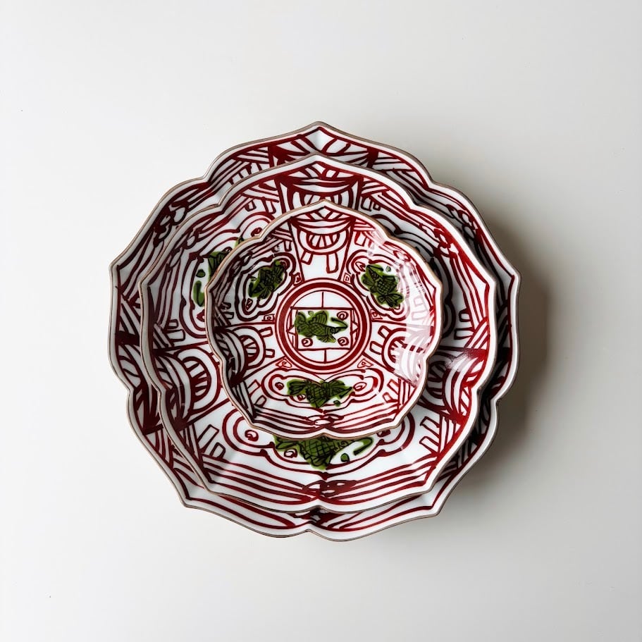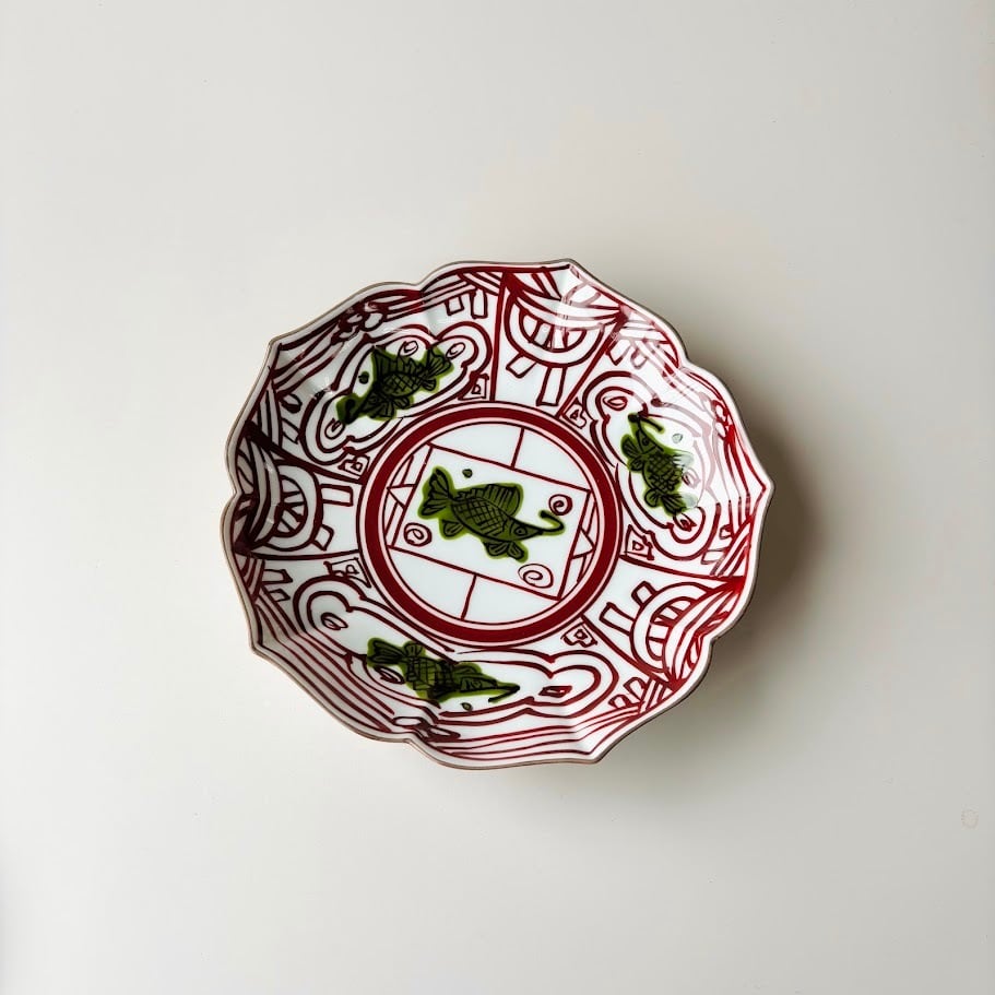 【伊万里焼】錦魚紋桔梗渕六寸皿