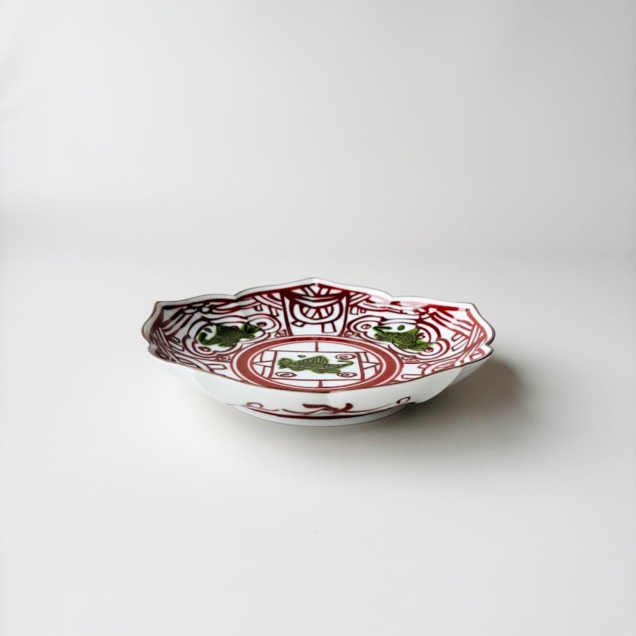 【伊万里焼】錦魚紋桔梗渕五寸皿